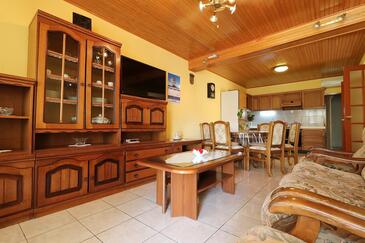 Ferienwohnung bietet Platz für 5 Gäste. Die Betten sind in Schlafzimmern, die es 2 gibt, innerhalb einer Gesamtfläche von 77m2, angeordnet. Die Gäste haben eine eigene Terrasse zur Verfügung, auf der sie in warmen Sommernächten genießen können. Das Apartment bietet Meerblick. Es ist erlaubt, Speisen auf dem Gemeinschafts-Grill vorzubereiten.