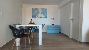 Haus bietet Platz für 8 Gäste. Die Betten sind in Schlafzimmern, die es 3 gibt, und in Wohnzimmer, innerhalb einer Gesamtfläche von 100m2, angeordnet. Die Gäste haben einen eigenen Balkon zur Verfügung, auf der sie in warmen Sommernächten genießen können. Das Haus bietet Meerblick. Es ist erlaubt, Speisen auf dem Gemeinschafts-Grill vorzubereiten.