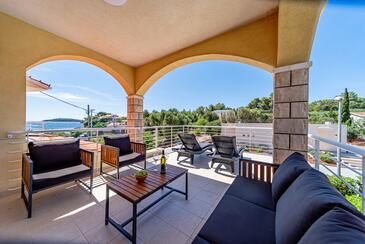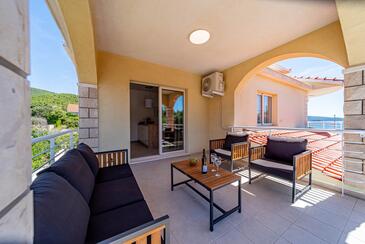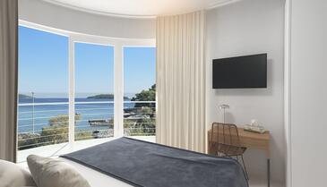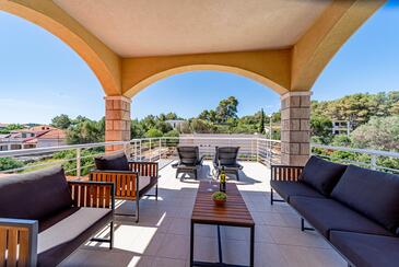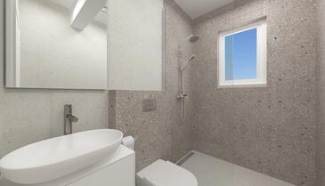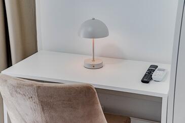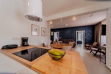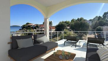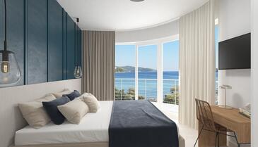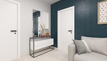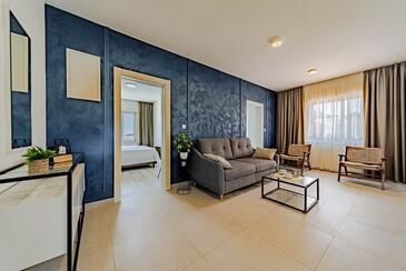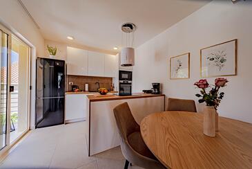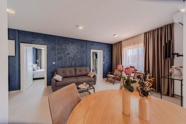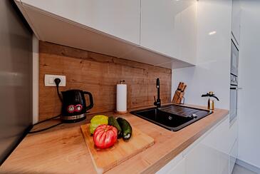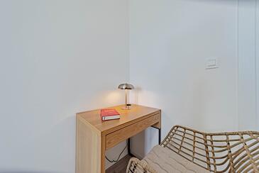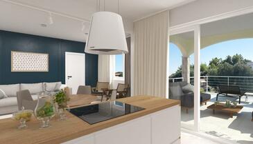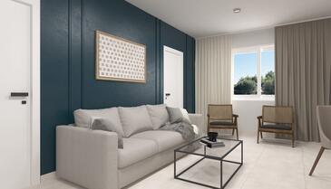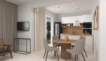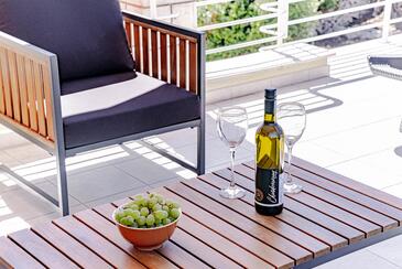 Ferienwohnung bietet Platz für 5 Gäste. Die Betten sind in Schlafzimmern, die es 2 gibt, und in Wohnzimmer, innerhalb einer Gesamtfläche von 54m2, angeordnet. Die Gäste haben eine eigene Terrasse zur Verfügung, auf der sie in warmen Sommernächten genießen können. Das Apartment bietet Meerblick. Es ist erlaubt, Speisen auf dem Gemeinschafts-Grill vorzubereiten. In der Unterkunftseinheit besteht die Möglichkeit des Mitbringens von Haustieren gegen Aufpreis.