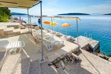 Ferienwohnung bietet Platz für 5 Gäste. Die Betten sind in Schlafzimmern, die es 2 gibt, und in Wohnzimmer, innerhalb einer Gesamtfläche von 55m2, angeordnet. Die Gäste haben eine eigene Terrasse zur Verfügung, auf der sie in warmen Sommernächten genießen können. Das Apartment bietet Meerblick. Es ist erlaubt, Speisen auf dem Gemeinschafts-Grill vorzubereiten. In der Unterkunftseinheit besteht die Möglichkeit des Mitbringens von Haustieren gegen Aufpreis.