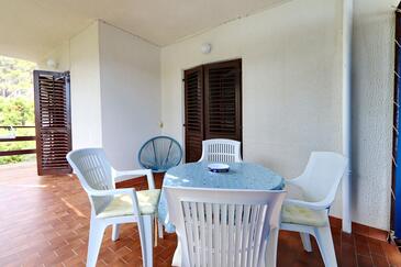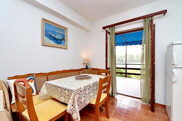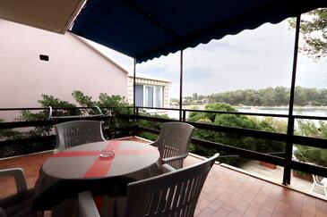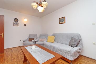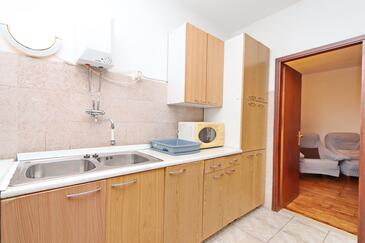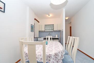 Ferienwohnung bietet Platz für 4 Gäste. Die Betten sind in Schlafzimmern, die es 2 gibt, innerhalb einer Gesamtfläche von 46m2, angeordnet. Die Gäste haben eine eigene Terrasse zur Verfügung, auf der sie in warmen Sommernächten genießen können. Das Apartment bietet Meerblick. Es ist erlaubt, Speisen auf dem Gemeinschafts-Grill vorzubereiten. In der Unterkunftseinheit besteht die Möglichkeit des Mitbringens von Haustieren gegen Aufpreis.