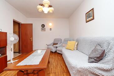 Ferienwohnung bietet Platz für 4 Gäste. Die Betten sind in Schlafzimmern, die es 2 gibt, innerhalb einer Gesamtfläche von 46m2, angeordnet. Die Gäste haben eine eigene Terrasse zur Verfügung, auf der sie in warmen Sommernächten genießen können. Das Apartment bietet Meerblick. Es ist erlaubt, Speisen auf dem Gemeinschafts-Grill vorzubereiten. In der Unterkunftseinheit besteht die Möglichkeit des Mitbringens von Haustieren gegen Aufpreis.