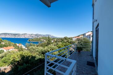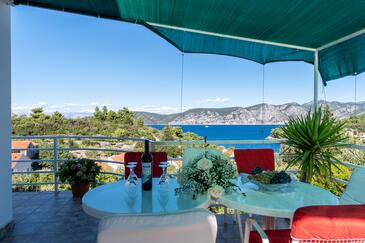 Ferienwohnung bietet Platz für 6 Gäste. Die Betten sind in Schlafzimmern, die es 3 gibt, innerhalb einer Gesamtfläche von 71m2, angeordnet. Die Gäste haben eine eigene Terrasse zur Verfügung, auf der sie in warmen Sommernächten genießen können. Das Apartment bietet Meerblick. Es ist erlaubt, Speisen auf dem Gemeinschafts-Grill vorzubereiten.