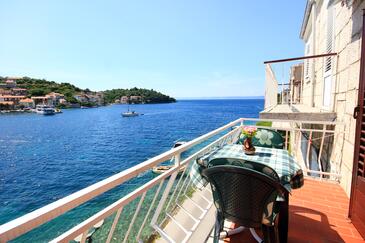Studio bietet Platz für 3 Gäste. Die Betten sind in Schlafzimmern, die es 1 gibt, und in Wohnzimmer, innerhalb einer Gesamtfläche von 31m2, angeordnet. Die Gäste haben einen eigenen Balkon zur Verfügung, auf der sie in warmen Sommernächten genießen können. Das Studio-Apartment bietet Meerblick. Es ist erlaubt, Speisen auf dem Gemeinschafts-Grill vorzubereiten.