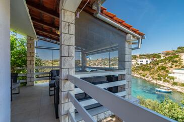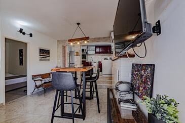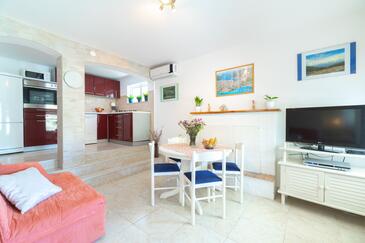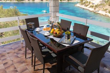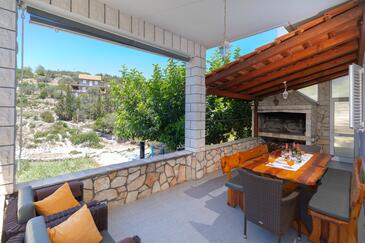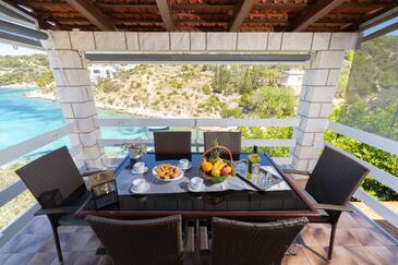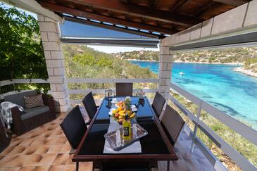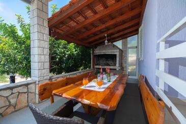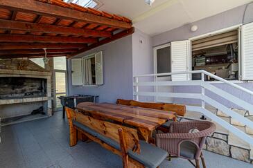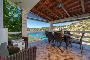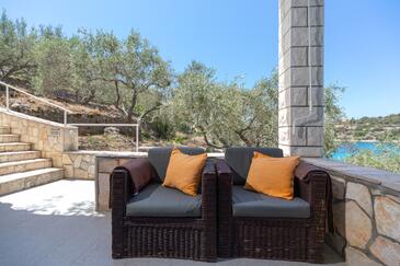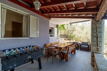 Haus bietet Platz für 10 Gäste. Die Betten sind in Schlafzimmern, die es 5 gibt, innerhalb einer Gesamtfläche von 102m2, angeordnet. Die Gäste haben eine eigene Terrasse zur Verfügung, auf der sie in warmen Sommernächten genießen können. Das Haus bietet Meerblick. Für vollen Genuss und Entspannung gibt es einen privaten Grill für Gäste dieser Unterkunft.