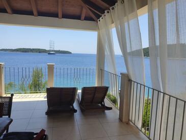 Haus bietet Platz für 8 Gäste. Die Betten sind in Schlafzimmern, die es 4 gibt, innerhalb einer Gesamtfläche von 250m2, angeordnet. Die Gäste haben eine eigene Terrasse zur Verfügung, auf der sie in warmen Sommernächten genießen können. Das Haus bietet Meerblick. Für vollen Genuss und Entspannung gibt es einen privaten Grill für Gäste dieser Unterkunft.