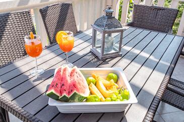 Ferienwohnung bietet Platz für 5 Gäste. Die Betten sind in Schlafzimmern, die es 2 gibt, und in Wohnzimmer, innerhalb einer Gesamtfläche von 47m2, angeordnet. Die Gäste haben eine eigene Terrasse zur Verfügung, auf der sie in warmen Sommernächten genießen können. Das Apartment bietet Meerblick. Es ist erlaubt, Speisen auf dem Gemeinschafts-Grill vorzubereiten. In der Unterkunftseinheit besteht die Möglichkeit des Mitbringens von Haustieren, und die Dienstleistung ist im Preis der Unterkunft enthalten.
