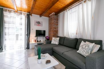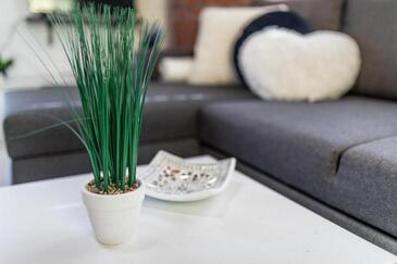 Ferienwohnung bietet Platz für 4 Gäste. Die Betten sind in Schlafzimmern, die es 2 gibt, innerhalb einer Gesamtfläche von 57m2, angeordnet. Die Gäste haben eine eigene Terrasse zur Verfügung, auf der sie in warmen Sommernächten genießen können. Es ist erlaubt, Speisen auf dem Gemeinschafts-Grill vorzubereiten. In der Unterkunftseinheit besteht die Möglichkeit des Mitbringens von Haustieren gegen Aufpreis.