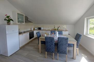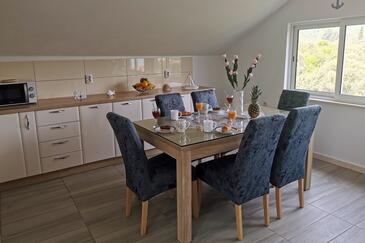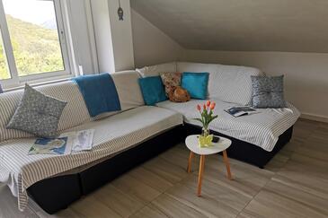 Ferienwohnung bietet Platz für 6 Gäste. Die Betten sind in Schlafzimmern, die es 2 gibt, und in Wohnzimmer, innerhalb einer Gesamtfläche von 74m2, angeordnet. Die Gäste haben eine eigene Terrasse zur Verfügung, auf der sie in warmen Sommernächten genießen können. Das Apartment bietet Meerblick. Für vollen Genuss und Entspannung gibt es einen privaten Grill für Gäste dieser Unterkunft.