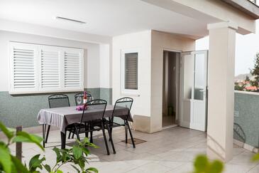 Ferienwohnung bietet Platz für 4 Gäste. Die Betten sind in Schlafzimmern, die es 2 gibt, innerhalb einer Gesamtfläche von 81m2, angeordnet. Die Gäste haben eine eigene Terrasse zur Verfügung, auf der sie in warmen Sommernächten genießen können. Das Apartment bietet Meerblick. Es ist erlaubt, Speisen auf dem Gemeinschafts-Grill vorzubereiten.