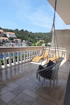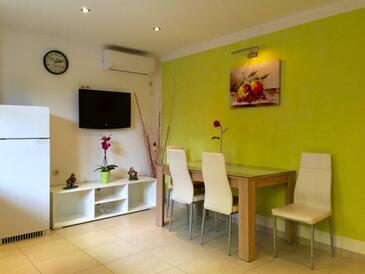 Ferienwohnung bietet Platz für 4 Gäste. Die Betten sind in Schlafzimmern, die es 2 gibt, innerhalb einer Gesamtfläche von 43m2, angeordnet. Die Gäste haben eine eigene Terrasse zur Verfügung, auf der sie in warmen Sommernächten genießen können. Das Apartment bietet Meerblick. Es ist erlaubt, Speisen auf dem Gemeinschafts-Grill vorzubereiten. In der gebuchten Unterkunftseinheit zahlt man am Ort ein Depositum ( der Preis ist an der Internetseite angeführt ).