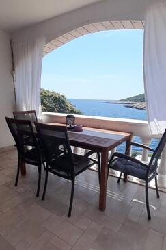 Ferienwohnung bietet Platz für 4 Gäste. Die Betten sind in Schlafzimmern, die es 2 gibt, innerhalb einer Gesamtfläche von 43m2, angeordnet. Die Gäste haben eine eigene Terrasse zur Verfügung, auf der sie in warmen Sommernächten genießen können. Das Apartment bietet Meerblick. Es ist erlaubt, Speisen auf dem Gemeinschafts-Grill vorzubereiten. In der gebuchten Unterkunftseinheit zahlt man am Ort ein Depositum ( der Preis ist an der Internetseite angeführt ).
