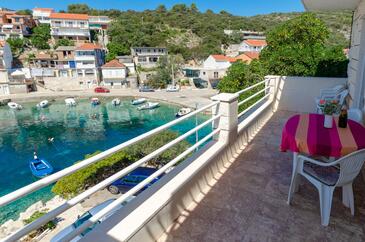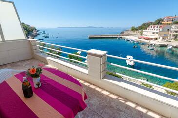 Ferienwohnung bietet Platz für 6 Gäste. Die Betten sind in Schlafzimmern, die es 3 gibt, innerhalb einer Gesamtfläche von 59m2, angeordnet. Die Gäste haben eine eigene Terrasse zur Verfügung, auf der sie in warmen Sommernächten genießen können. Das Apartment bietet Meerblick. Es ist erlaubt, Speisen auf dem Gemeinschafts-Grill vorzubereiten. In der Unterkunftseinheit besteht die Möglichkeit des Mitbringens von Haustieren gegen Aufpreis.