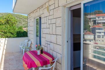 Ferienwohnung bietet Platz für 6 Gäste. Die Betten sind in Schlafzimmern, die es 3 gibt, innerhalb einer Gesamtfläche von 59m2, angeordnet. Die Gäste haben eine eigene Terrasse zur Verfügung, auf der sie in warmen Sommernächten genießen können. Das Apartment bietet Meerblick. Es ist erlaubt, Speisen auf dem Gemeinschafts-Grill vorzubereiten. In der Unterkunftseinheit besteht die Möglichkeit des Mitbringens von Haustieren gegen Aufpreis.