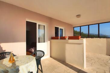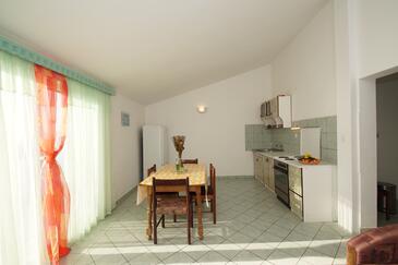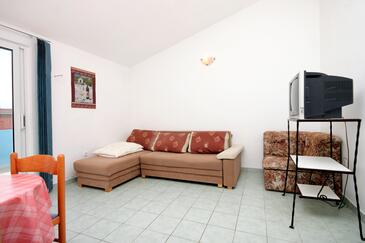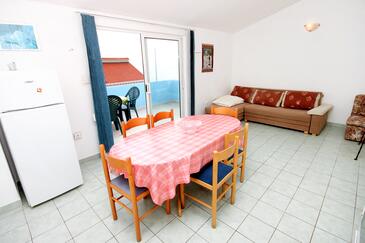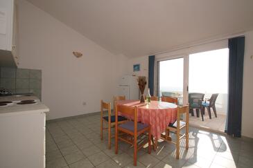 Ferienwohnung bietet Platz für 6 Gäste. Die Betten sind in Schlafzimmern, die es 2 gibt, und in Wohnzimmer, innerhalb einer Gesamtfläche von 52m2, angeordnet. Die Gäste haben eine eigene Terrasse zur Verfügung, auf der sie in warmen Sommernächten genießen können. Das Apartment bietet Meerblick. Es ist erlaubt, Speisen auf dem Gemeinschafts-Grill vorzubereiten. In der Unterkunftseinheit besteht die Möglichkeit des Mitbringens von Haustieren gegen Aufpreis.