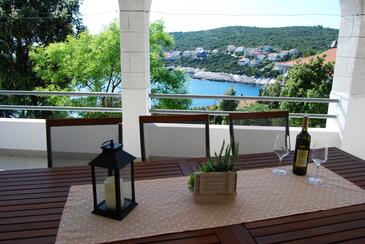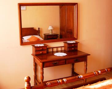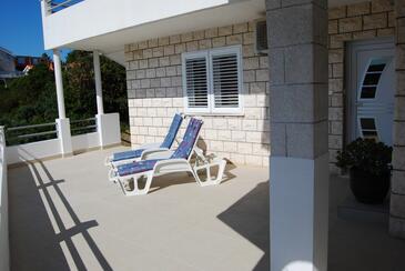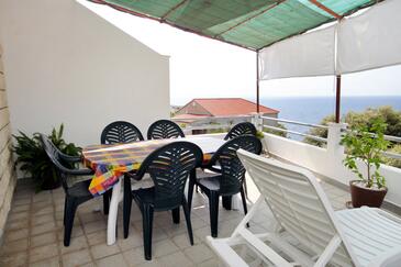 Ferienwohnung bietet Platz für 6 Gäste. Die Betten sind in Schlafzimmern, die es 3 gibt, innerhalb einer Gesamtfläche von 97m2, angeordnet. Die Gäste haben eine eigene Terrasse zur Verfügung, auf der sie in warmen Sommernächten genießen können. Das Apartment bietet Meerblick. Es ist erlaubt, Speisen auf dem Gemeinschafts-Grill vorzubereiten.