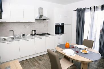 Ferienwohnung bietet Platz für 2 Gäste. Die Betten sind in Schlafzimmern, die es 1 gibt, innerhalb einer Gesamtfläche von 29m2, angeordnet. Die Gäste haben eine eigene Terrasse zur Verfügung, auf der sie in warmen Sommernächten genießen können. Das Apartment bietet Meerblick. Es ist erlaubt, Speisen auf dem Gemeinschafts-Grill vorzubereiten.