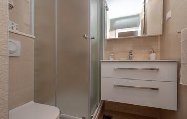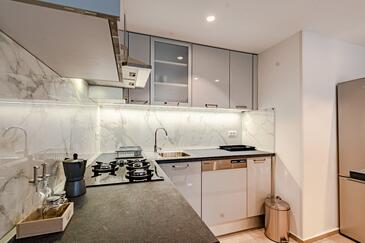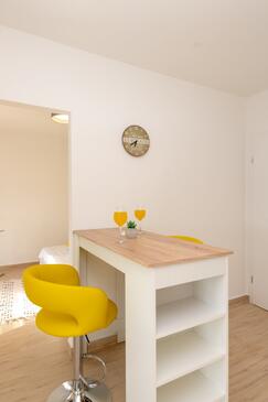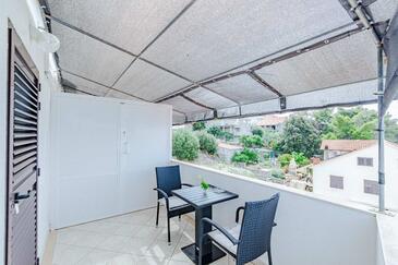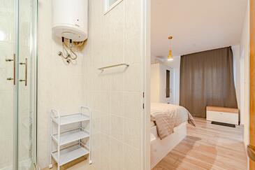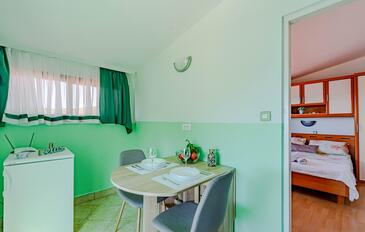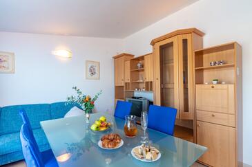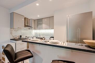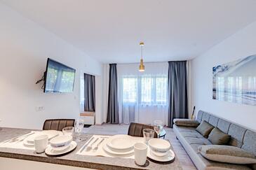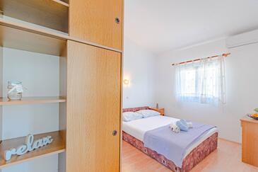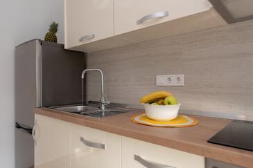 Ferienwohnung bietet Platz für 4 Gäste. Die Betten sind in Schlafzimmern, die es 2 gibt, innerhalb einer Gesamtfläche von 46m2, angeordnet. Die Gäste haben eine eigene Terrasse zur Verfügung, auf der sie in warmen Sommernächten genießen können. Das Apartment bietet Meerblick. Es ist erlaubt, Speisen auf dem Gemeinschafts-Grill vorzubereiten.