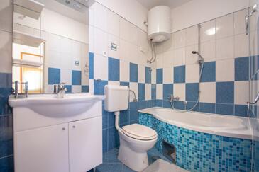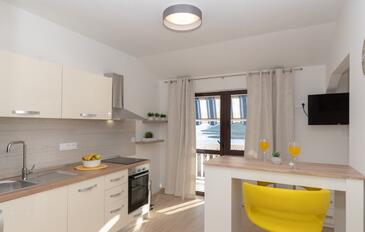 Ferienwohnung bietet Platz für 4 Gäste. Die Betten sind in Schlafzimmern, die es 2 gibt, innerhalb einer Gesamtfläche von 46m2, angeordnet. Die Gäste haben eine eigene Terrasse zur Verfügung, auf der sie in warmen Sommernächten genießen können. Das Apartment bietet Meerblick. Es ist erlaubt, Speisen auf dem Gemeinschafts-Grill vorzubereiten.