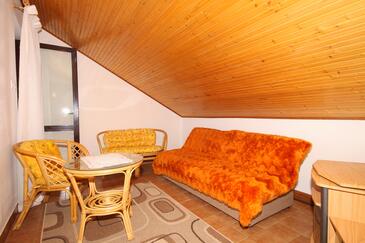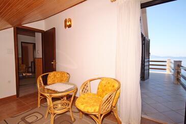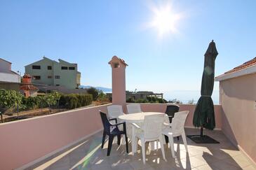 Ferienwohnung bietet Platz für 6 Gäste. Die Betten sind in Schlafzimmern, die es 2 gibt, und in Wohnzimmer, innerhalb einer Gesamtfläche von 64m2, angeordnet. Die Gäste haben eine eigene Terrasse zur Verfügung, auf der sie in warmen Sommernächten genießen können. Das Apartment bietet Meerblick. Es ist erlaubt, Speisen auf dem Gemeinschafts-Grill vorzubereiten.