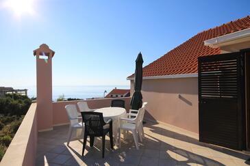 Ferienwohnung bietet Platz für 6 Gäste. Die Betten sind in Schlafzimmern, die es 2 gibt, und in Wohnzimmer, innerhalb einer Gesamtfläche von 64m2, angeordnet. Die Gäste haben eine eigene Terrasse zur Verfügung, auf der sie in warmen Sommernächten genießen können. Das Apartment bietet Meerblick. Es ist erlaubt, Speisen auf dem Gemeinschafts-Grill vorzubereiten.