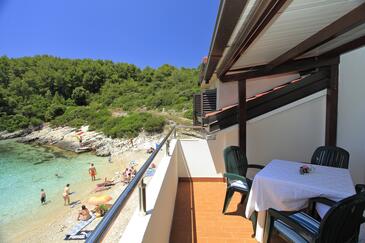Ferienwohnung bietet Platz für 4 Gäste. Die Betten sind in Schlafzimmern, die es 2 gibt, innerhalb einer Gesamtfläche von 53m2, angeordnet. Die Gäste haben eine eigene Terrasse zur Verfügung, auf der sie in warmen Sommernächten genießen können. Das Apartment bietet Meerblick. Für vollen Genuss und Entspannung gibt es einen privaten Grill für Gäste dieser Unterkunft.