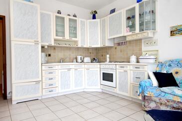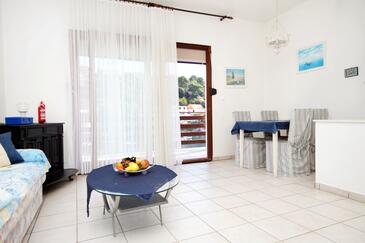Ferienwohnung bietet Platz für 4 Gäste. Die Betten sind in Schlafzimmern, die es 2 gibt, innerhalb einer Gesamtfläche von 71m2, angeordnet. Die Gäste haben einen eigenen Balkon zur Verfügung, auf der sie in warmen Sommernächten genießen können. Das Apartment bietet Meerblick. Es ist erlaubt, Speisen auf dem Gemeinschafts-Grill vorzubereiten.