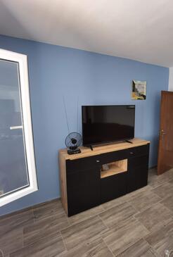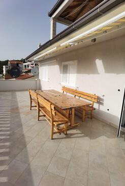 Ferienwohnung bietet Platz für 6 Gäste. Die Betten sind in Schlafzimmern, die es 3 gibt, innerhalb einer Gesamtfläche von 75m2, angeordnet. Die Gäste haben eine eigene Terrasse zur Verfügung, auf der sie in warmen Sommernächten genießen können. Das Apartment bietet Meerblick. Es ist erlaubt, Speisen auf dem Gemeinschafts-Grill vorzubereiten.