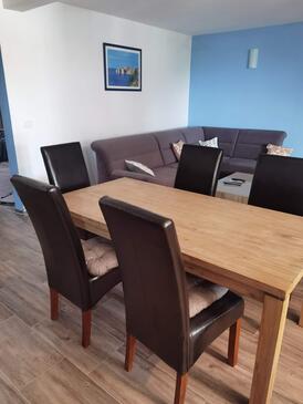 Ferienwohnung bietet Platz für 6 Gäste. Die Betten sind in Schlafzimmern, die es 3 gibt, innerhalb einer Gesamtfläche von 75m2, angeordnet. Die Gäste haben eine eigene Terrasse zur Verfügung, auf der sie in warmen Sommernächten genießen können. Das Apartment bietet Meerblick. Es ist erlaubt, Speisen auf dem Gemeinschafts-Grill vorzubereiten.