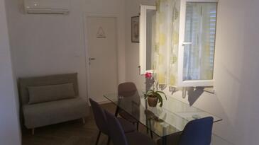 Ferienwohnung bietet Platz für 3 Gäste. Die Betten sind in Schlafzimmern, die es 1 gibt, und in Esszimmer, innerhalb einer Gesamtfläche von 28m2, angeordnet. Die Gäste haben eine eigene Terrasse zur Verfügung, auf der sie in warmen Sommernächten genießen können. Das Apartment bietet Meerblick. Es ist erlaubt, Speisen auf dem Gemeinschafts-Grill vorzubereiten.