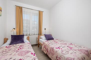 Ferienwohnung bietet Platz für 4 Gäste. Die Betten sind in Schlafzimmern, die es 2 gibt, innerhalb einer Gesamtfläche von 70m2, angeordnet. Die Gäste haben eine eigene Terrasse zur Verfügung, auf der sie in warmen Sommernächten genießen können. Es ist erlaubt, Speisen auf dem Gemeinschafts-Grill vorzubereiten.