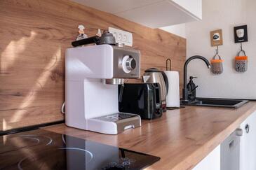 Haus bietet Platz für 5 Gäste. Die Betten sind in Schlafzimmern, die es 2 gibt, und in Wohnzimmer, innerhalb einer Gesamtfläche von 42m2, angeordnet. Die Gäste haben eine eigene Terrasse zur Verfügung, auf der sie in warmen Sommernächten genießen können. Für vollen Genuss und Entspannung gibt es einen privaten Grill für Gäste dieser Unterkunft. Während ihres Aufenthalts können sich Gäste im privaten Schwimmbad entspannen. In der Unterkunftseinheit besteht die Möglichkeit des Mitbringens von Haustieren, und die Dienstleistung ist im Preis der Unterkunft enthalten.