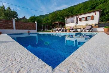 Haus bietet Platz für 4 Gäste. Die Betten sind in Schlafzimmern, die es 2 gibt, innerhalb einer Gesamtfläche von 42m2, angeordnet. Die Gäste haben eine eigene Terrasse zur Verfügung, auf der sie in warmen Sommernächten genießen können. Für vollen Genuss und Entspannung gibt es einen privaten Grill für Gäste dieser Unterkunft. Während ihres Aufenthalts können sich Gäste im privaten Schwimmbad entspannen. In der Unterkunftseinheit besteht die Möglichkeit des Mitbringens von Haustieren gegen Aufpreis.