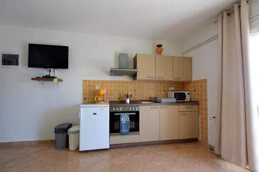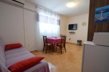 Ferienwohnung bietet Platz für 3 Gäste. Die Betten sind in Schlafzimmern, die es 1 gibt, innerhalb einer Gesamtfläche von 42m2, angeordnet. Die Gäste haben eine eigene Terrasse zur Verfügung, auf der sie in warmen Sommernächten genießen können. Es ist erlaubt, Speisen auf dem Gemeinschafts-Grill vorzubereiten.