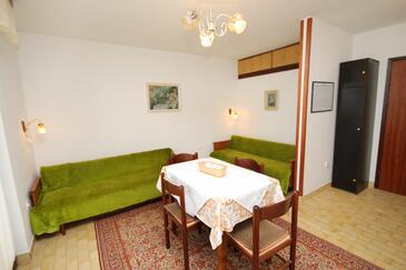 Ferienwohnung bietet Platz für 6 Gäste. Die Betten sind in Schlafzimmern, die es 2 gibt, und in Esszimmer, innerhalb einer Gesamtfläche von 55m2, angeordnet. Die Gäste haben eine eigene Terrasse zur Verfügung, auf der sie in warmen Sommernächten genießen können. Es ist erlaubt, Speisen auf dem Gemeinschafts-Grill vorzubereiten. In der Unterkunftseinheit besteht die Möglichkeit des Mitbringens von Haustieren, und die Dienstleistung ist im Preis der Unterkunft enthalten.