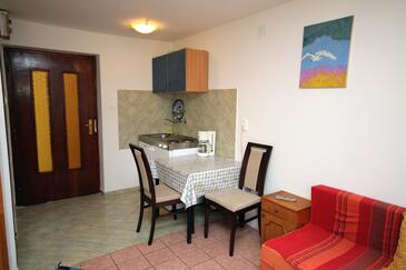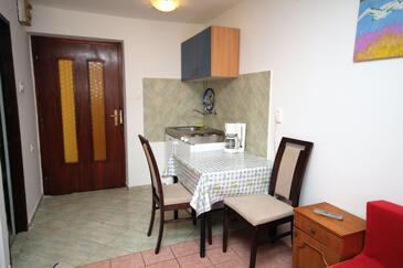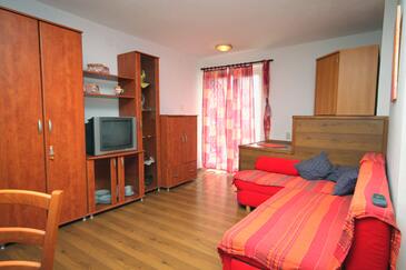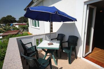 Ferienwohnung bietet Platz für 3 Gäste. Die Betten sind in Schlafzimmern, die es 1 gibt, innerhalb einer Gesamtfläche von 41m2, angeordnet. Die Gäste haben eine eigene Terrasse zur Verfügung, auf der sie in warmen Sommernächten genießen können. Das Apartment bietet Meerblick. Es ist erlaubt, Speisen auf dem Gemeinschafts-Grill vorzubereiten.