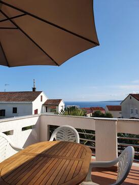 Ferienwohnung bietet Platz für 4 Gäste. Die Betten sind in Schlafzimmern, die es 2 gibt, innerhalb einer Gesamtfläche von 37m2, angeordnet. Die Gäste haben eine eigene Terrasse zur Verfügung, auf der sie in warmen Sommernächten genießen können. Das Apartment bietet Meerblick. Es ist erlaubt, Speisen auf dem Gemeinschafts-Grill vorzubereiten.