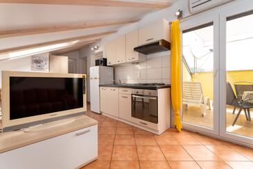 Ferienwohnung bietet Platz für 4 Gäste. Die Betten sind in Schlafzimmern, die es 2 gibt, innerhalb einer Gesamtfläche von 36m2, angeordnet. Die Gäste haben eine eigene Terrasse zur Verfügung, auf der sie in warmen Sommernächten genießen können. Es ist erlaubt, Speisen auf dem Gemeinschafts-Grill vorzubereiten. Durch die Terrasse der gebuchten Unterkunftseinheit gehen auch andere Gäste oder Vermieter.