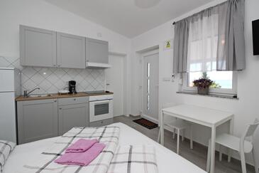 Ferienwohnung bietet Platz für 6 Gäste. Die Betten sind in Schlafzimmern, die es 2 gibt, und in Wohnzimmer, innerhalb einer Gesamtfläche von 60m2, angeordnet. Die Gäste haben eine eigene Terrasse zur Verfügung, auf der sie in warmen Sommernächten genießen können. Das Apartment bietet Meerblick. In der Unterkunftseinheit besteht die Möglichkeit des Mitbringens von Haustieren gegen Aufpreis.