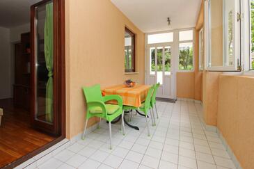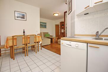 Ferienwohnung bietet Platz für 4 Gäste. Die Betten sind in Schlafzimmern, die es 2 gibt, innerhalb einer Gesamtfläche von 52m2, angeordnet. Die Gäste haben eine eigene Terrasse zur Verfügung, auf der sie in warmen Sommernächten genießen können. Es ist erlaubt, Speisen auf dem Gemeinschafts-Grill vorzubereiten.