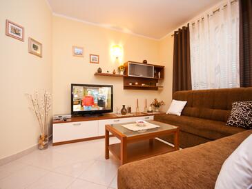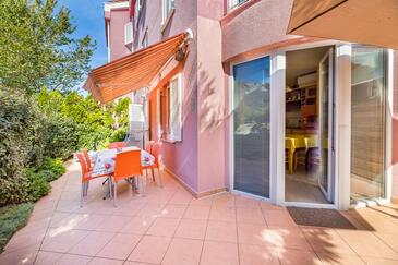 Ferienwohnung bietet Platz für 6 Gäste. Die Betten sind in Schlafzimmern, die es 2 gibt, und in Wohnzimmer, innerhalb einer Gesamtfläche von 64m2, angeordnet. Die Gäste haben eine eigene Terrasse zur Verfügung, auf der sie in warmen Sommernächten genießen können. Für vollen Genuss und Entspannung gibt es einen privaten Grill für Gäste dieser Unterkunft.