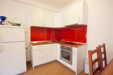 Ferienwohnung bietet Platz für 5 Gäste. Die Betten sind in Schlafzimmern, die es 2 gibt, und in Wohnzimmer, innerhalb einer Gesamtfläche von 66m2, angeordnet. Die Gäste haben eine eigene Terrasse zur Verfügung, auf der sie in warmen Sommernächten genießen können. Es ist erlaubt, Speisen auf dem Gemeinschafts-Grill vorzubereiten.
