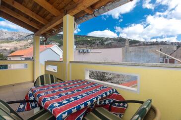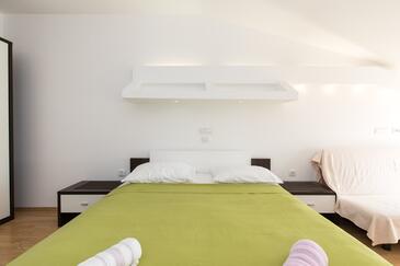 Ferienwohnung bietet Platz für 5 Gäste. Die Betten sind in Schlafzimmern, die es 2 gibt, innerhalb einer Gesamtfläche von 41m2, angeordnet. Die Gäste haben eine eigene Terrasse zur Verfügung, auf der sie in warmen Sommernächten genießen können.