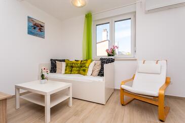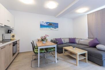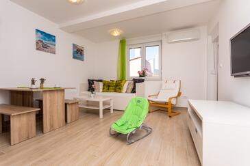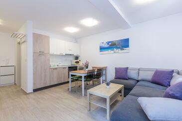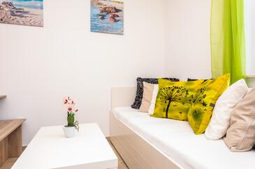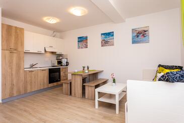 Ferienwohnung bietet Platz für 6 Gäste. Die Betten sind in Schlafzimmern, die es 2 gibt, und in Wohnzimmer, innerhalb einer Gesamtfläche von 39m2, angeordnet. Die Gäste haben eine eigene Terrasse zur Verfügung, auf der sie in warmen Sommernächten genießen können. Das Apartment bietet Meerblick. In der Unterkunftseinheit besteht die Möglichkeit des Mitbringens von Haustieren gegen Aufpreis.