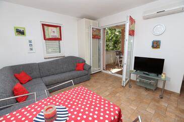 Ferienwohnung bietet Platz für 4 Gäste. Die Betten sind in Schlafzimmern, die es 1 gibt, und in Wohnzimmer, innerhalb einer Gesamtfläche von 34m2, angeordnet. Die Gäste haben eine eigene Terrasse zur Verfügung, auf der sie in warmen Sommernächten genießen können.