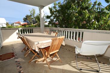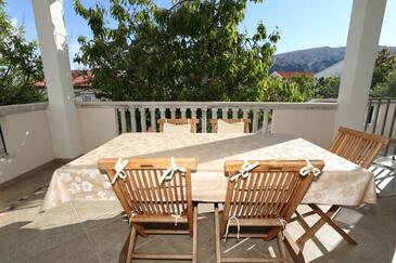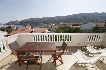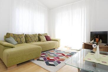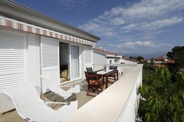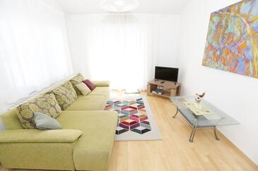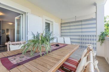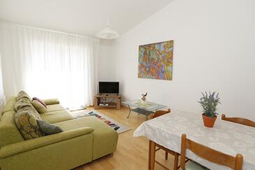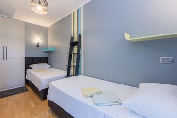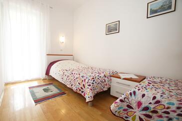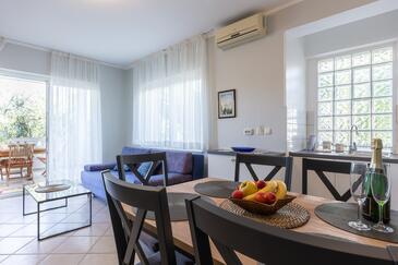 Ferienwohnung bietet Platz für 5 Gäste. Die Betten sind in Schlafzimmern, die es 2 gibt, und in Wohnzimmer, innerhalb einer Gesamtfläche von 42m2, angeordnet. Die Gäste haben eine eigene Terrasse zur Verfügung, auf der sie in warmen Sommernächten genießen können. Es ist erlaubt, Speisen auf dem Gemeinschafts-Grill vorzubereiten.