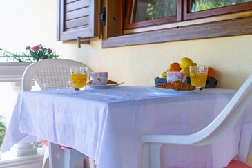 Ferienwohnung bietet Platz für 3 Gäste. Die Betten sind in Schlafzimmern, die es 1 gibt, und in Wohnzimmer, innerhalb einer Gesamtfläche von 30m2, angeordnet. Die Gäste haben eine eigene Terrasse zur Verfügung, auf der sie in warmen Sommernächten genießen können. Das Apartment bietet Meerblick.
