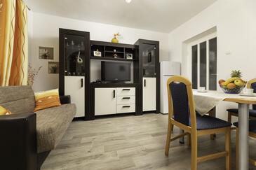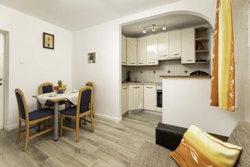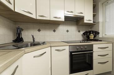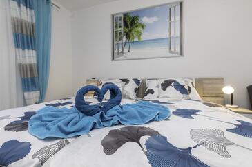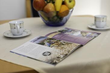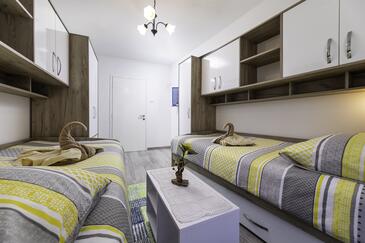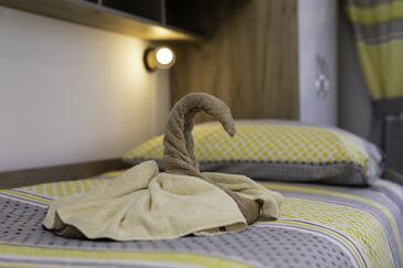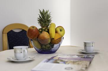Ferienwohnung bietet Platz für 4 Gäste. Die Betten sind in Schlafzimmern, die es 2 gibt, innerhalb einer Gesamtfläche von 38m2, angeordnet. Die Gäste haben eine eigene Terrasse zur Verfügung, auf der sie in warmen Sommernächten genießen können. Es ist erlaubt, Speisen auf dem Gemeinschafts-Grill vorzubereiten.