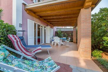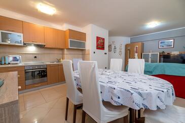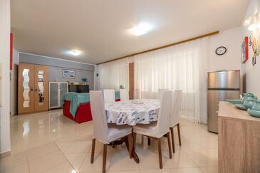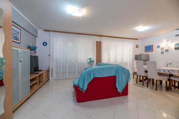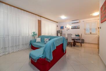 Ferienwohnung bietet Platz für 6 Gäste. Die Betten sind in Schlafzimmern, die es 2 gibt, und in Wohnzimmer, innerhalb einer Gesamtfläche von 71m2, angeordnet. Die Gäste haben eine eigene Terrasse zur Verfügung, auf der sie in warmen Sommernächten genießen können. Für vollen Genuss und Entspannung gibt es einen privaten Grill für Gäste dieser Unterkunft.