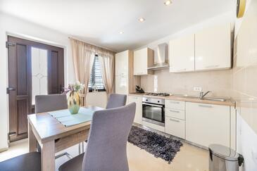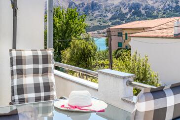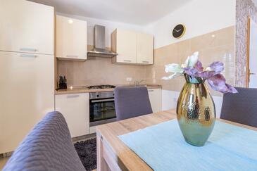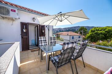 Ferienwohnung bietet Platz für 4 Gäste. Die Betten sind in Schlafzimmern, die es 2 gibt, innerhalb einer Gesamtfläche von 50m2, angeordnet. Die Gäste haben eine eigene Terrasse zur Verfügung, auf der sie in warmen Sommernächten genießen können.